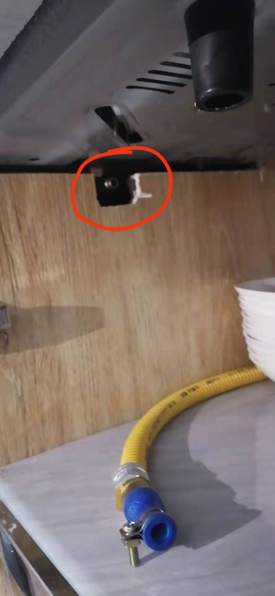 打開櫥(chu)櫃,發現(xian)金屬軟(ruan)管完全(quán)脫落。