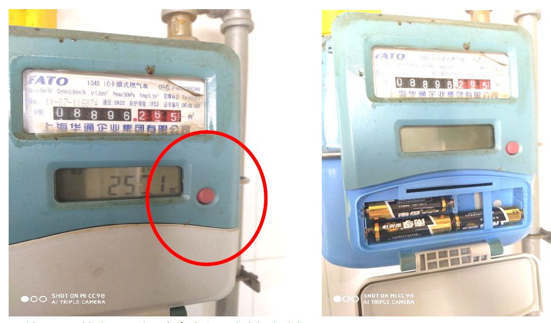 2、确認燃氣表電池是否有電(即便是超市剛剛買回的電池也🈲可🍉能電量不足)。燃氣表檢查方法: