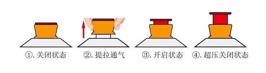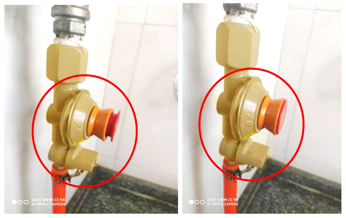 2、如果紅色提帽沒有吸回(下圖右),說明軟管、竈具不漏👉氣,用戶可以放心使用。